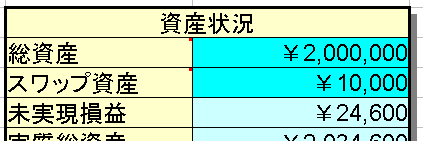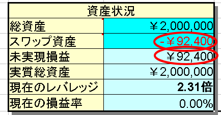 「スワップ資産」に現在の持っているスワップ金額を入力します。ここの欄は、時間が経過すれば増えてゆくはずですので、チェックする度に変更してください。