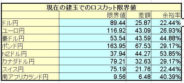 次に、どのくらいの円高まで耐えることが出来るかを確認します。