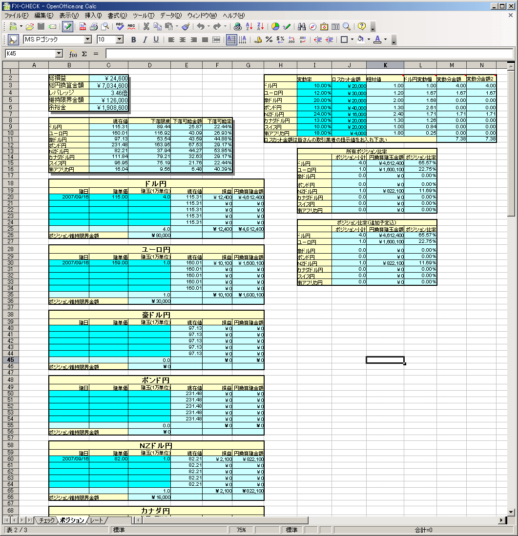 ポジション比率の確認をします。