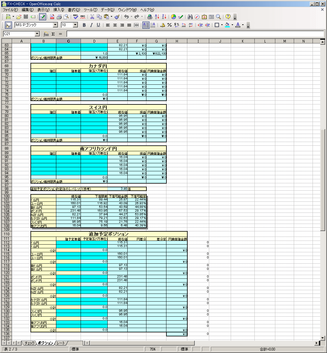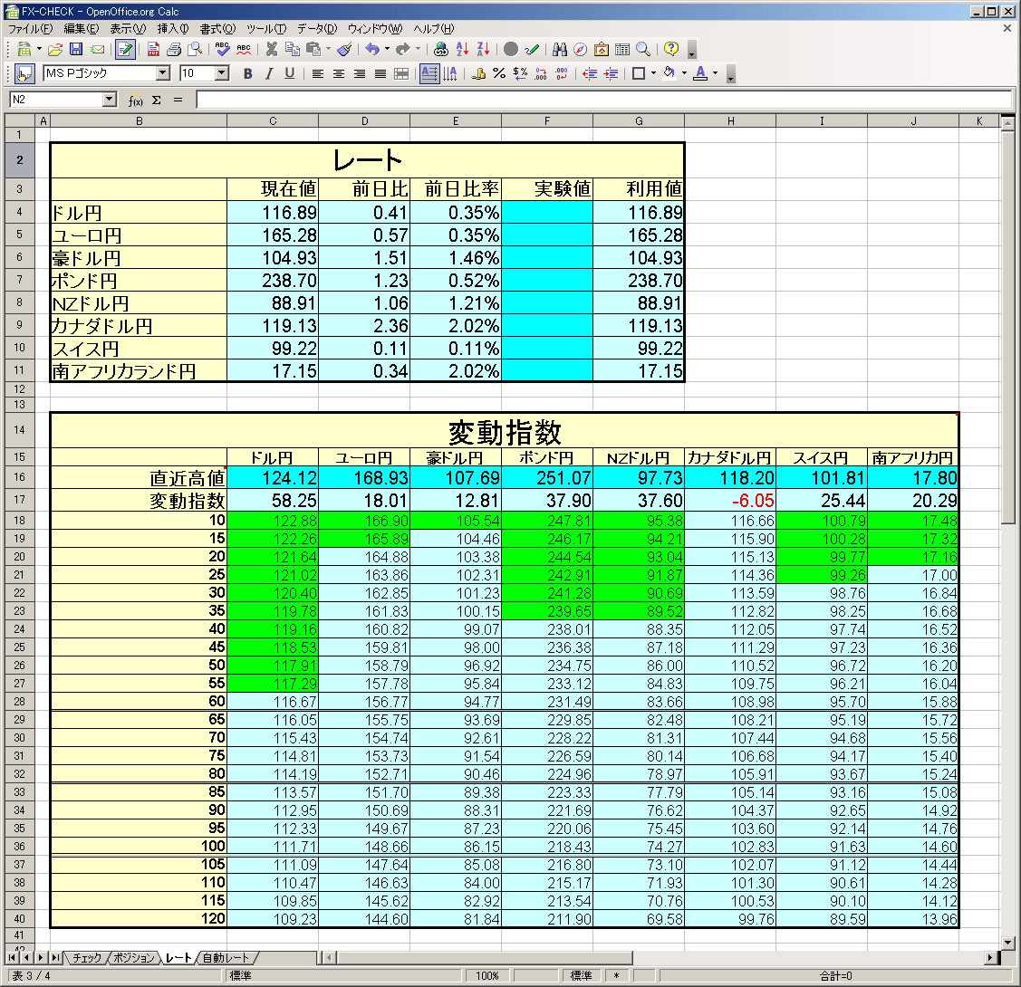本ツール FX-CHECK.ods をダウンロードし、ダブルクリックをすれば起動します。