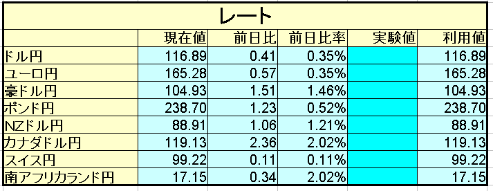 「実験値」という欄がありますが、これは、もし○○円になったらという仮定の金額を入れた場合に何倍のレバレッジになるのか、という試しの値を入れた場合の動きを見るための欄です。値を入れると、そのレートが利用されます。BSキーで中身を削除すれば現在値が利用されるようになります。
