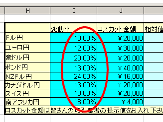 変動率を入力します。これは、どのくらい価格変動があるかを表した物です。この値は、ロスカット金額を算出する時に使用します。